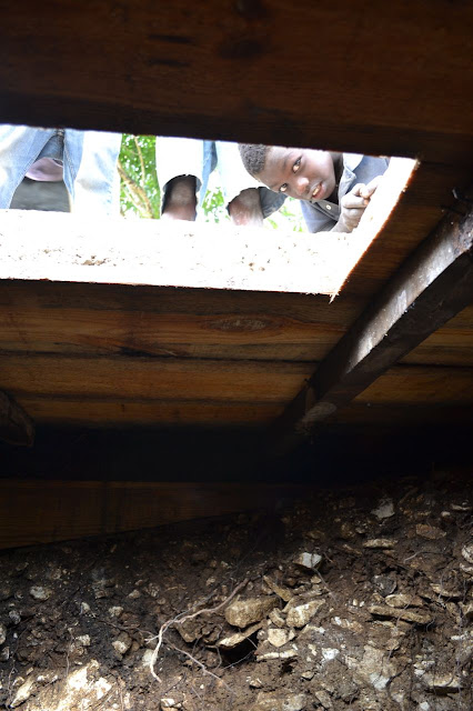 Today Andrew and Wes went down to the clinic and removed the concrete forms off the septic lid... which included going inside to take the interior framing down!